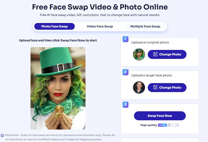 For creating truly spectacular and spooky face-swapped images and videos this Halloween, we highly recommend the Vidqu AI face swapper.